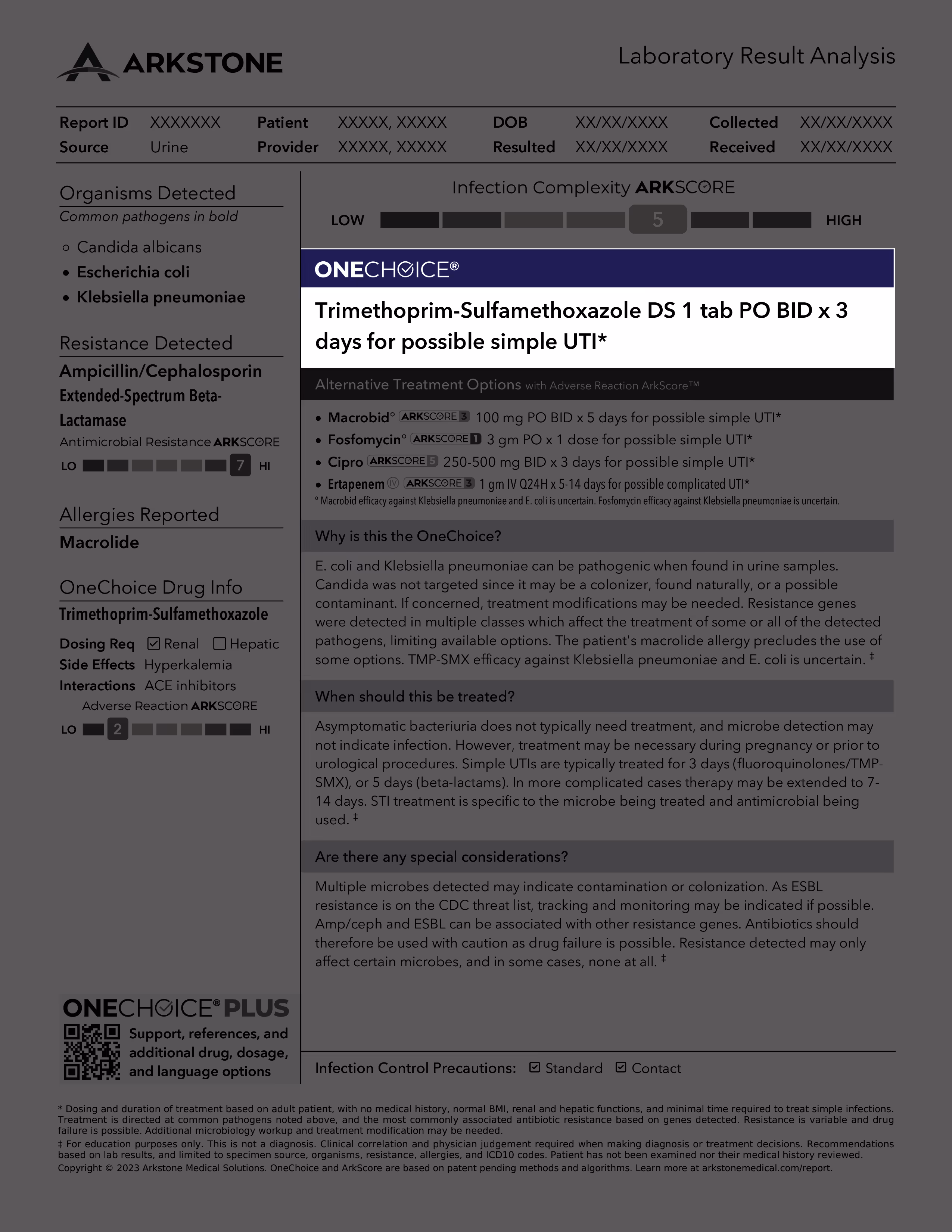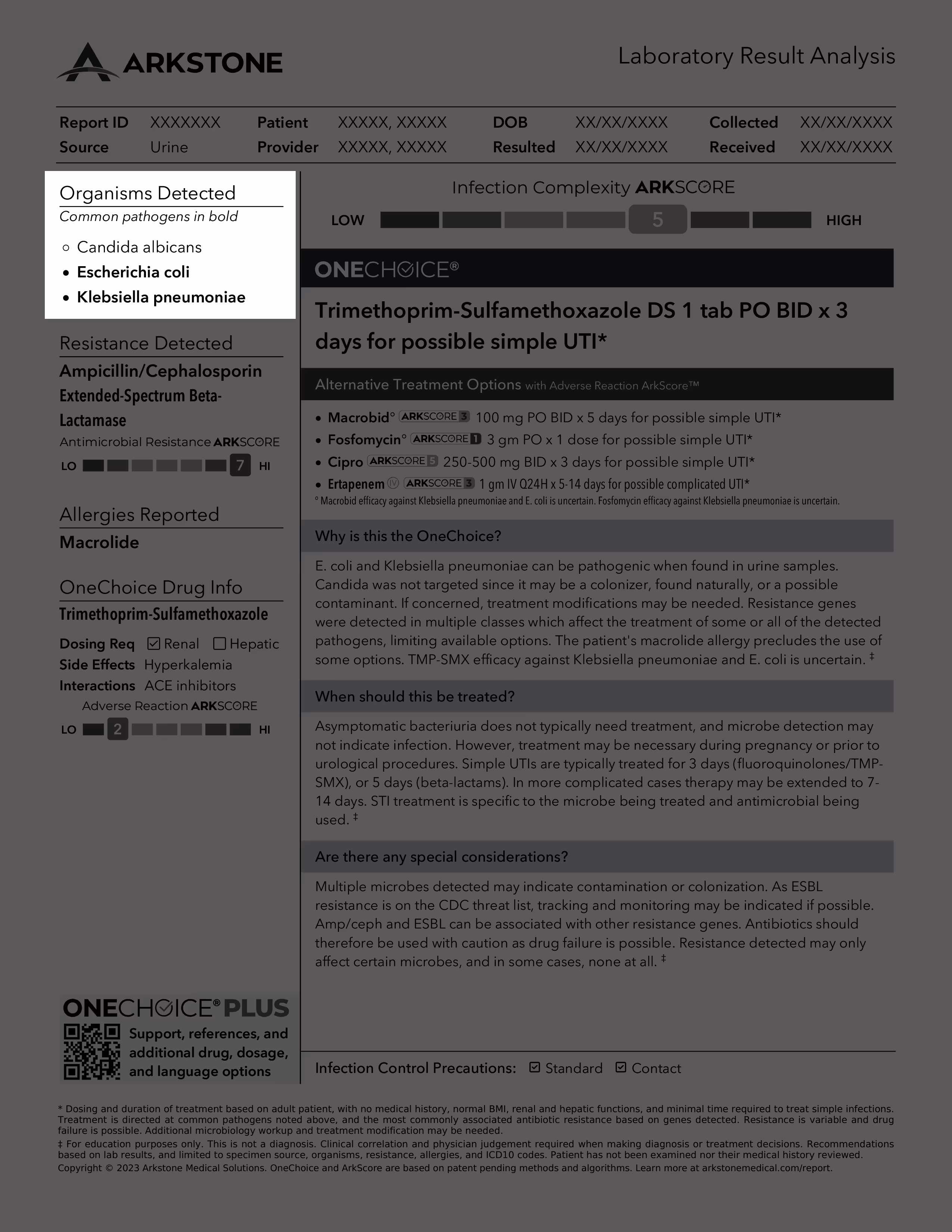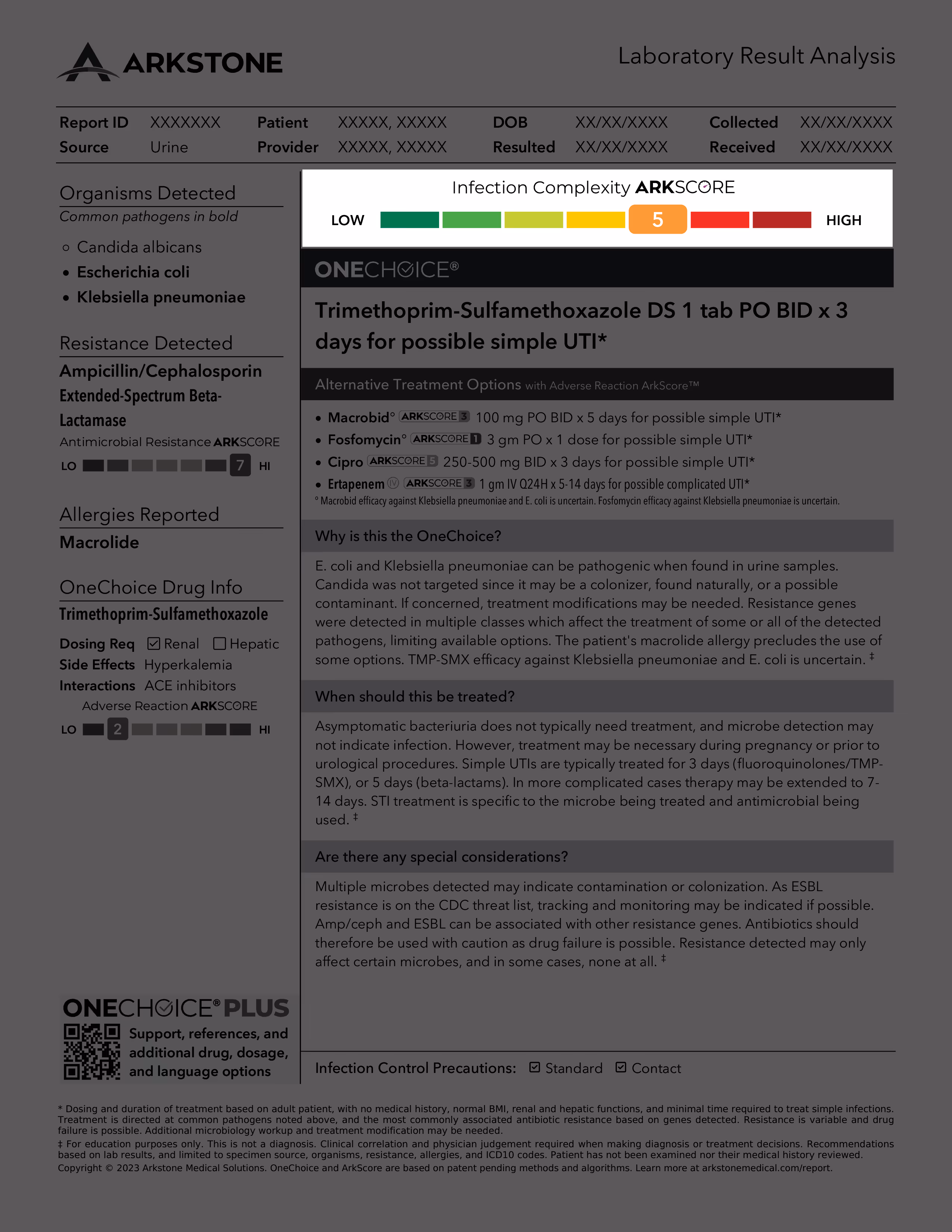 The Infection Complexity ArkScore™ gives providers an overall view of the challenges presented by the organisms and resistance genes detected in finding an optimal treatment regimen. More complex infections have fewer treatment options.