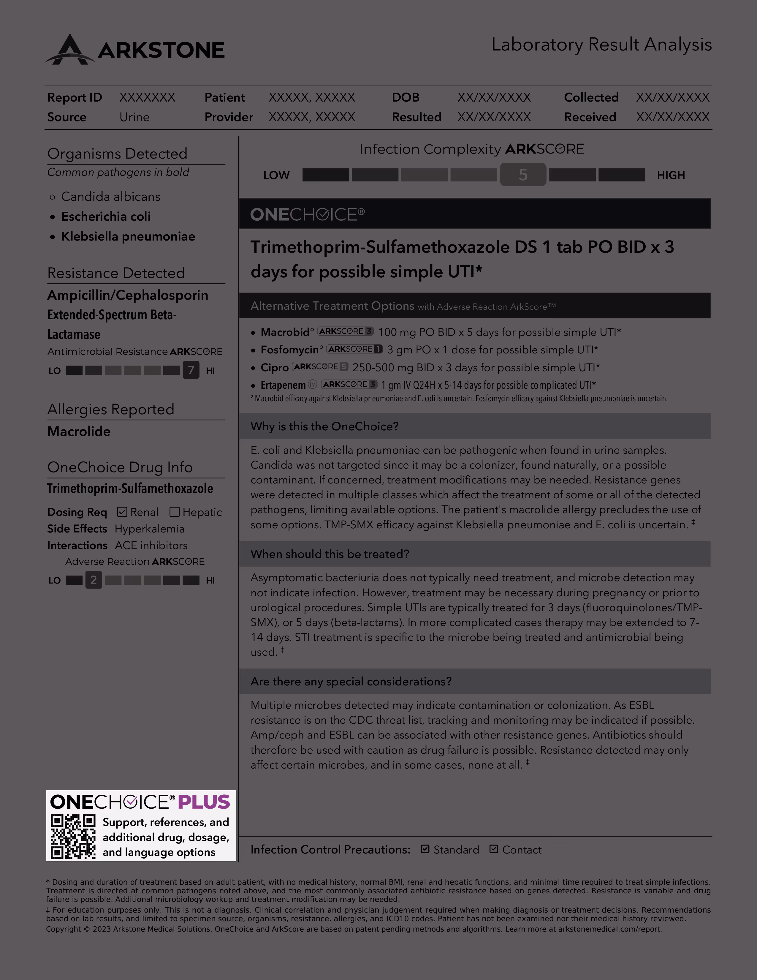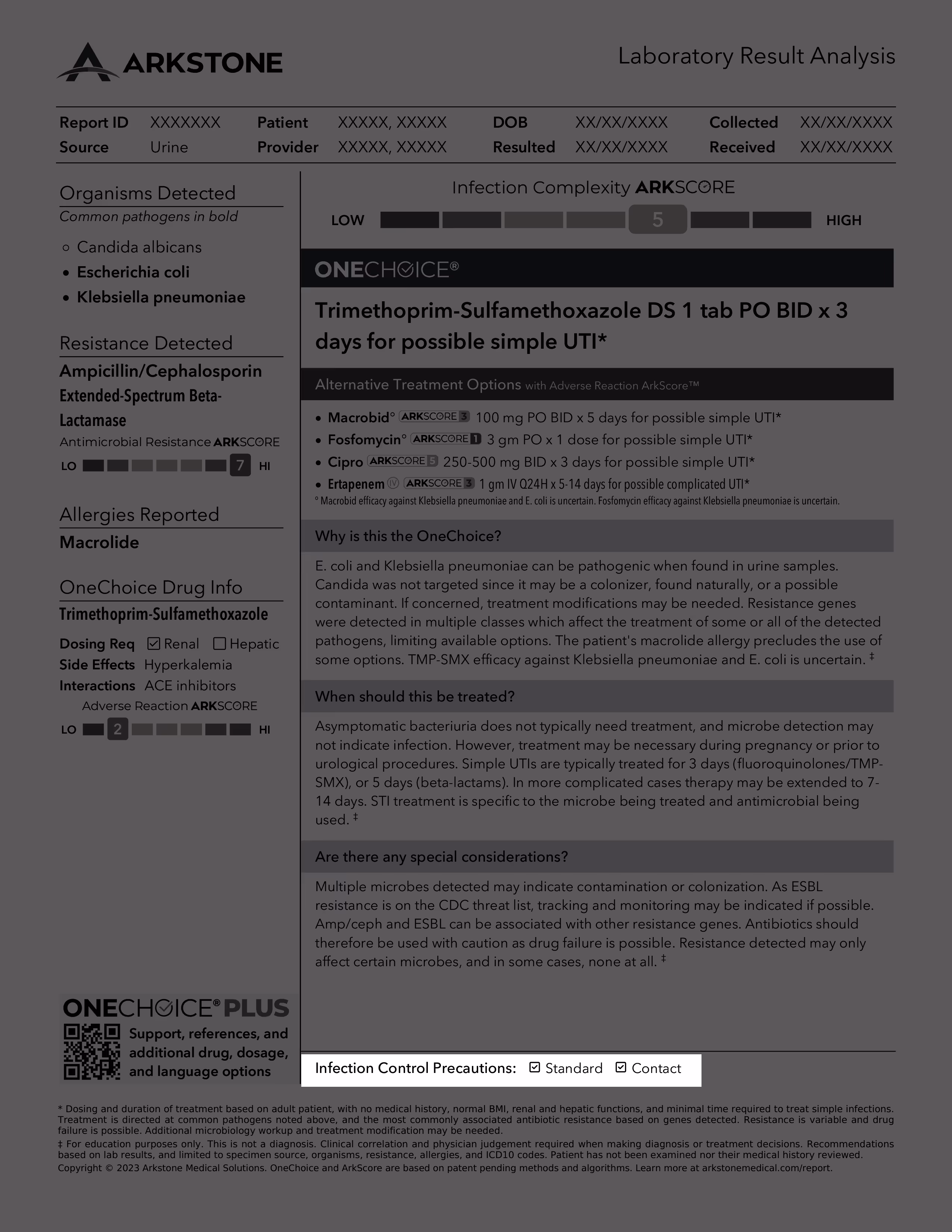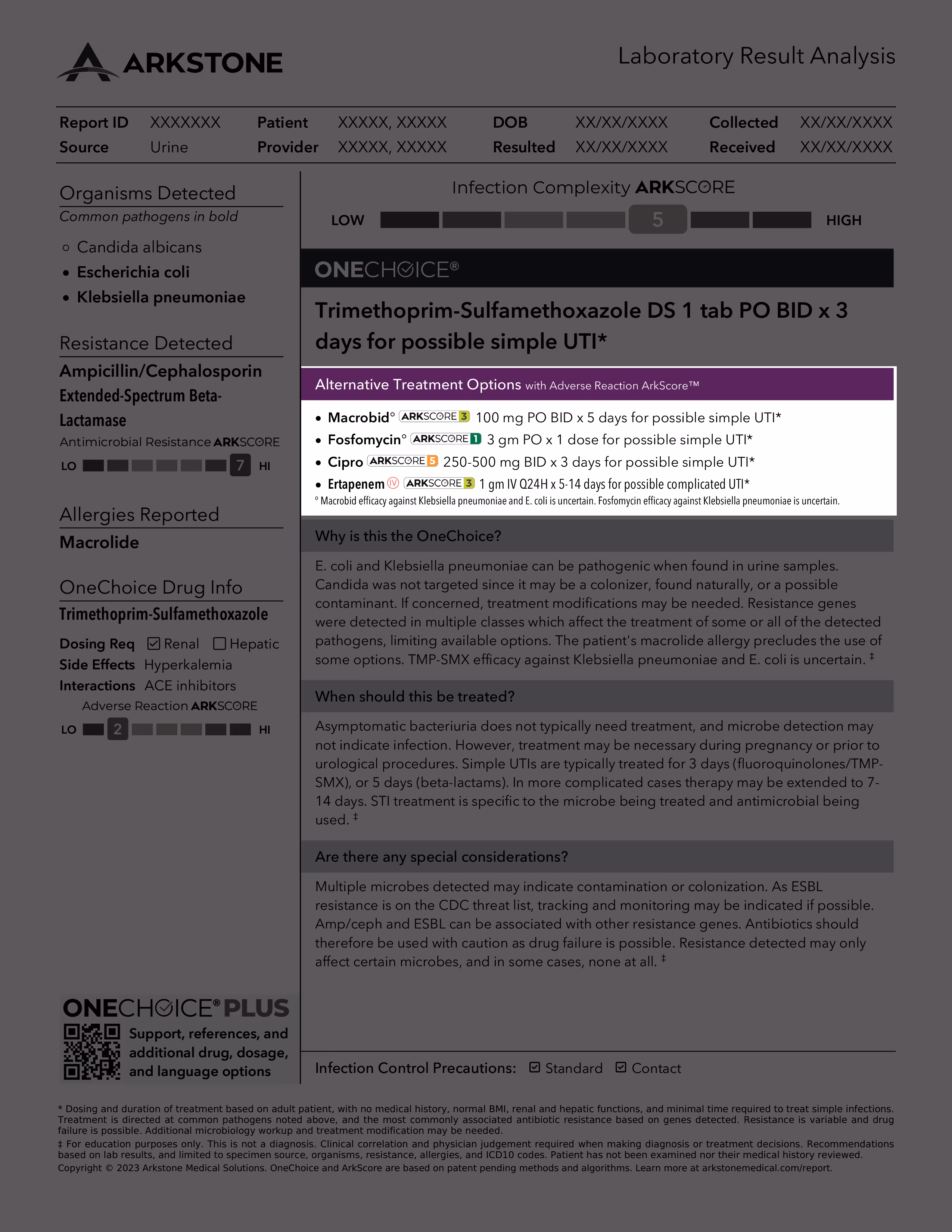 The Infection Complexity ArkScore™ gives providers an overall view of the challenges presented by the organisms and resistance genes detected in finding an optimal treatment regimen. More complex infections have fewer treatment options.